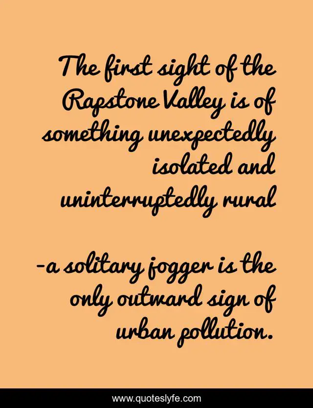 "a solitary jogger is the only outward sign of urban pollution. Quotes." Quoteslyfe.com, 2025. Fri. 05 Dec. 2025. <https://www.quoteslyfe.com/quote/The-first-sight-of-the-Rapstone-Valley-279685>.