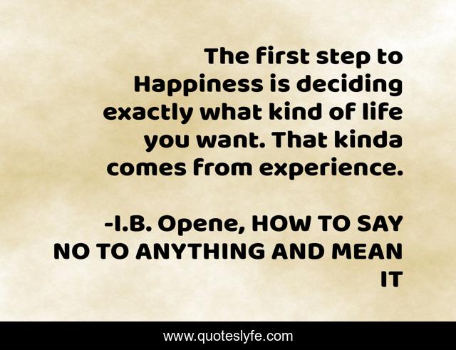 "I.B. Opene, HOW TO SAY NO TO ANYTHING AND MEAN IT Quotes." Quoteslyfe.com, 2025. Sat. 06 Dec. 2025. <https://www.quoteslyfe.com/quote/The-first-step-to-Happiness-is-deciding-187974>.