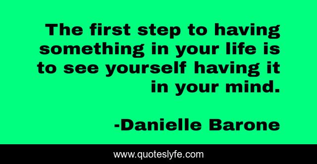 This page presents the quote "The first step to having something in your life is to see yourself having it in your mind.". Author of this quote is Danielle Barone. .