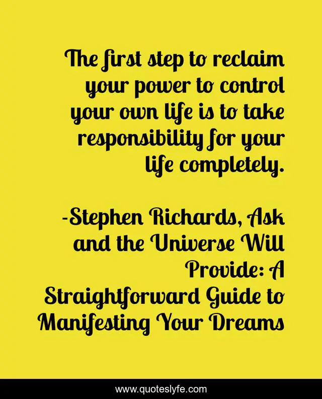"Stephen Richards, Ask and the Universe Will Provide: A Straightforward Guide to Manifesting Your Dreams Quotes." Quoteslyfe.com, 2025. Fri. 05 Dec. 2025. <https://www.quoteslyfe.com/quote/The-first-step-to-reclaim-your-power-44816>.