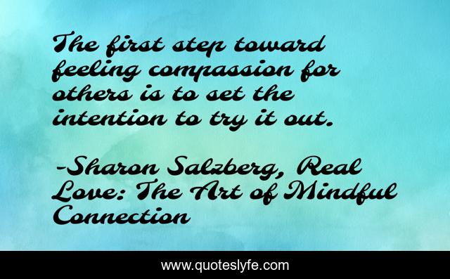 This page presents the quote "The first step toward feeling compassion for others is to set the intention to try it out.". Author of this quote is Sharon Salzberg, Real Love: The Art of Mindful Connection. This quote is about compassion, intention, real-love, relating-with-others, mindfulness,.