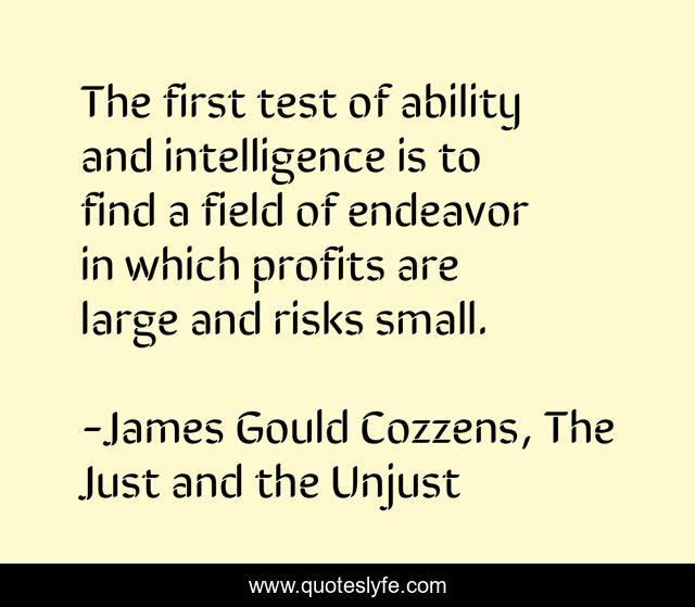 This page presents the quote "The first test of ability and intelligence is to find a field of endeavor in which profits are large and risks small.". Author of this quote is James Gould Cozzens, The Just and the Unjust. .