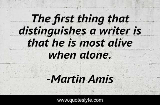This page presents the quote "The first thing that distinguishes a writer is that he is most alive when alone.". Author of this quote is Martin Amis. .