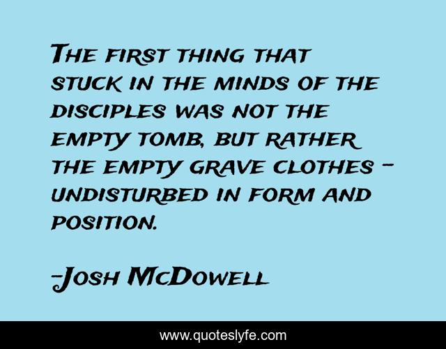 This page presents the quote "The first thing that stuck in the minds of the disciples was not the empty tomb, but rather the empty grave clothes - undisturbed in form and position.". Author of this quote is Josh McDowell. This quote is about clothes, minds, first,.