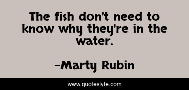 This page presents the quote "The fish don't need to know why they're in the water.". Author of this quote is Marty Rubin. This quote is about being, existence, explanations, reasons,.