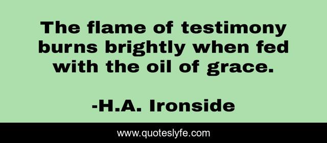 This page presents the quote "The flame of testimony burns brightly when fed with the oil of grace.". Author of this quote is H.A. Ironside. This quote is about confession, humility,.