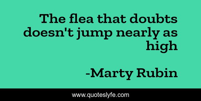 This page presents the quote "The flea that doubts doesn't jump nearly as high". Author of this quote is Marty Rubin. This quote is about confidence, doubt,.