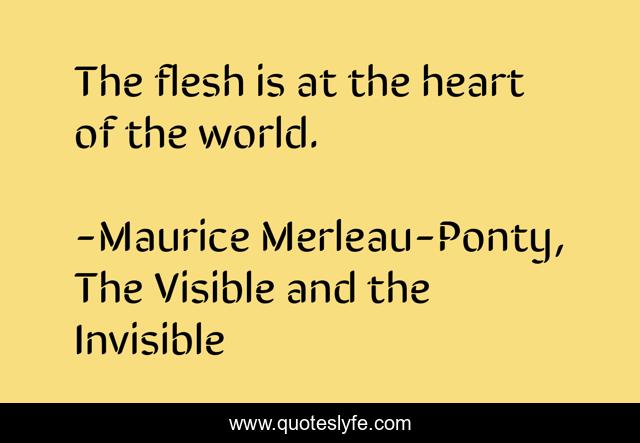 "Maurice Merleau-Ponty, The Visible and the Invisible Quotes." Quoteslyfe.com, 2025. Mon. 08 Dec. 2025. <https://www.quoteslyfe.com/quote/The-flesh-is-at-the-heart-of-89134>.