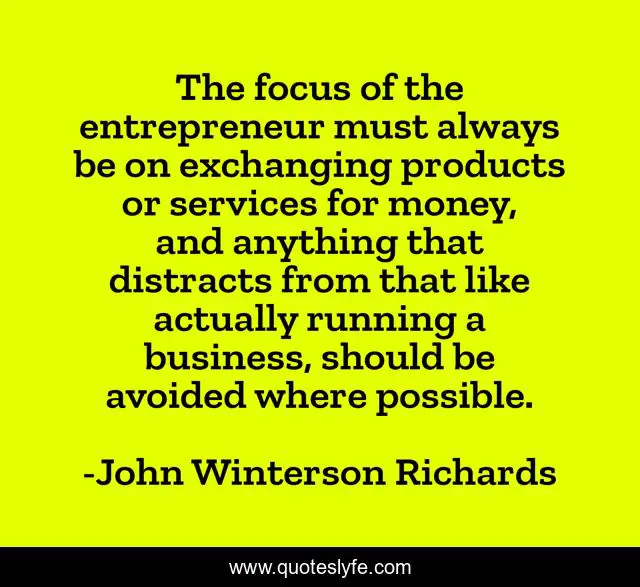 This page presents the quote "The focus of the entrepreneur must always be on exchanging products or services for money, and anything that distracts from that like actually running a business, should be avoided where possible.". Author of this quote is John Winterson Richards. This quote is about entrepreneur, business,.