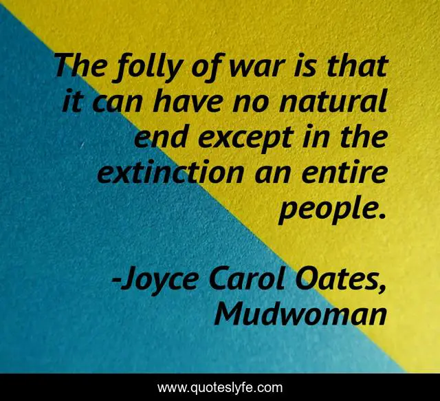 "Joyce Carol Oates, Mudwoman Quotes." Quoteslyfe.com, 2025. Mon. 08 Dec. 2025. <https://www.quoteslyfe.com/quote/The-folly-of-war-is-that-it-52498>.