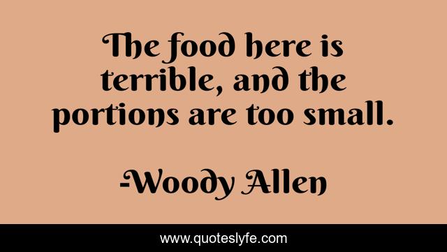This page presents the quote "The food here is terrible, and the portions are too small.". Author of this quote is Woody Allen. This quote is about small, terrible, here,.