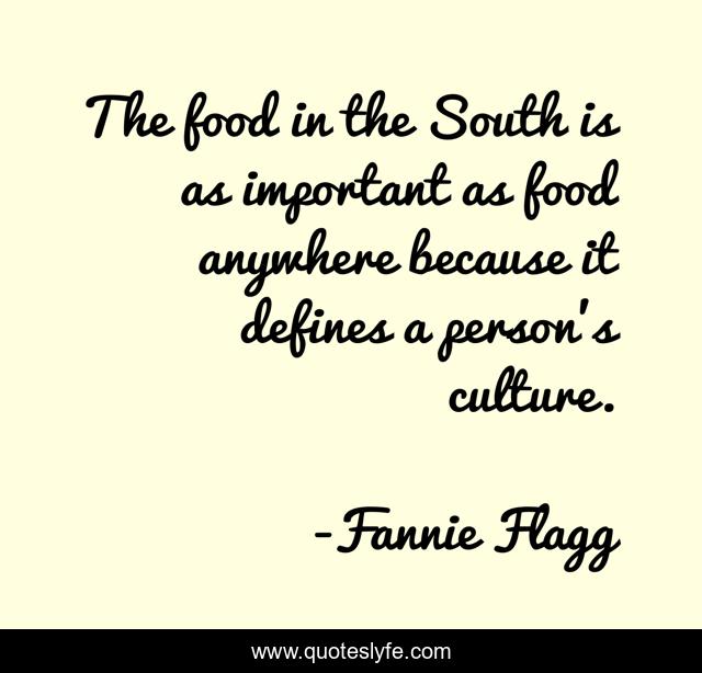 This page presents the quote "The food in the South is as important as food anywhere because it defines a person's culture.". Author of this quote is Fannie Flagg. This quote is about food, the-south,.