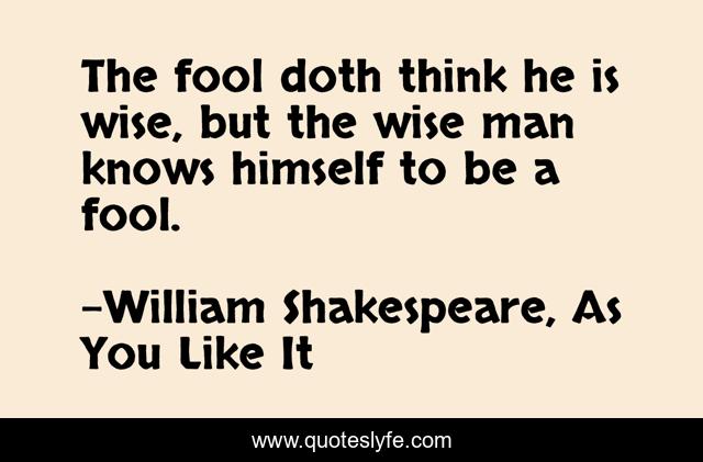 "William Shakespeare, As You Like It Quotes." Quoteslyfe.com, 2025. Sat. 06 Dec. 2025. <https://www.quoteslyfe.com/quote/The-fool-doth-think-he-is-wise-12215>.