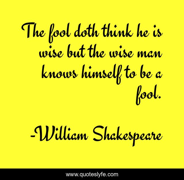 This page presents the quote "The fool doth think he is wise but the wise man knows himself to be a fool.". Author of this quote is William Shakespeare. .