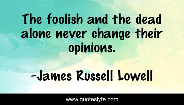 This page presents the quote "The foolish and the dead alone never change their opinions.". Author of this quote is James Russell Lowell. .