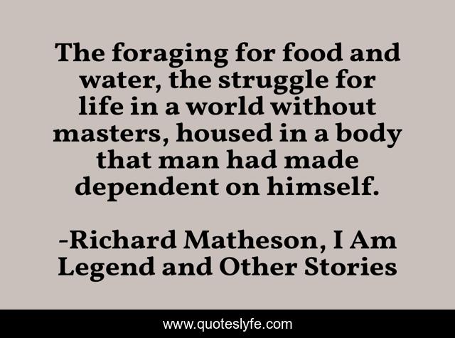 "Richard Matheson, I Am Legend and Other Stories Quotes." Quoteslyfe.com, 2025. Mon. 08 Dec. 2025. <https://www.quoteslyfe.com/quote/The-foraging-for-food-and-water-the-196043>.