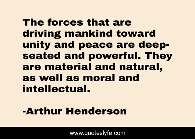 This page presents the quote "The forces that are driving mankind toward unity and peace are deep-seated and powerful. They are material and natural, as well as moral and intellectual.". Author of this quote is Arthur Henderson. This quote is about powerful, unity, moral,.