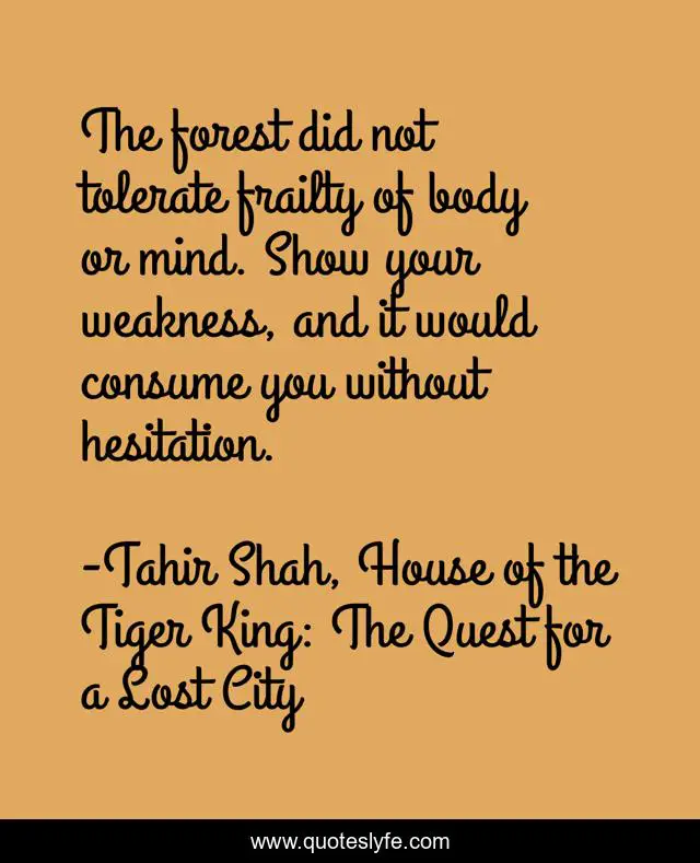 "Tahir Shah, House of the Tiger King: The Quest for a Lost City Quotes." Quoteslyfe.com, 2025. Fri. 05 Dec. 2025. <https://www.quoteslyfe.com/quote/The-forest-did-not-tolerate-frailty-of-217003>.