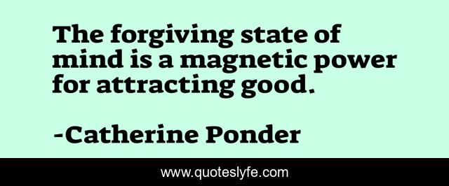 This page presents the quote "The forgiving state of mind is a magnetic power for attracting good.". Author of this quote is Catherine Ponder. This quote is about forgiveness, forgive,.