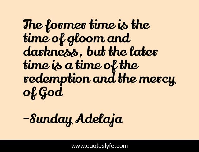 This page presents the quote "The former time is the time of gloom and darkness, but the later time is a time of the redemption and the mercy of God". Author of this quote is Sunday Adelaja. This quote is about gloom, mercy, darkness, redemotion, time,.
