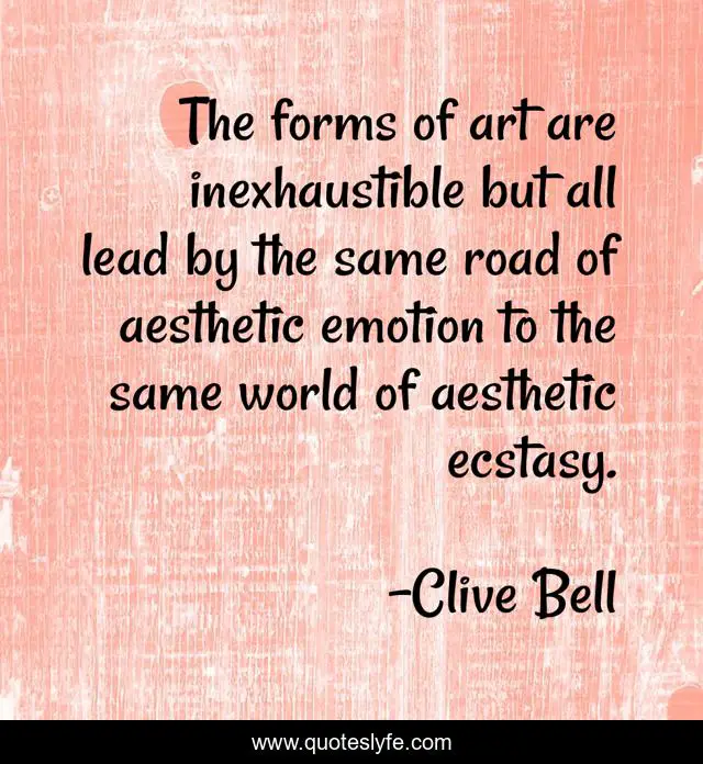 This page presents the quote "The forms of art are inexhaustible but all lead by the same road of aesthetic emotion to the same world of aesthetic ecstasy.". Author of this quote is Clive Bell. This quote is about emotion, world, road,.