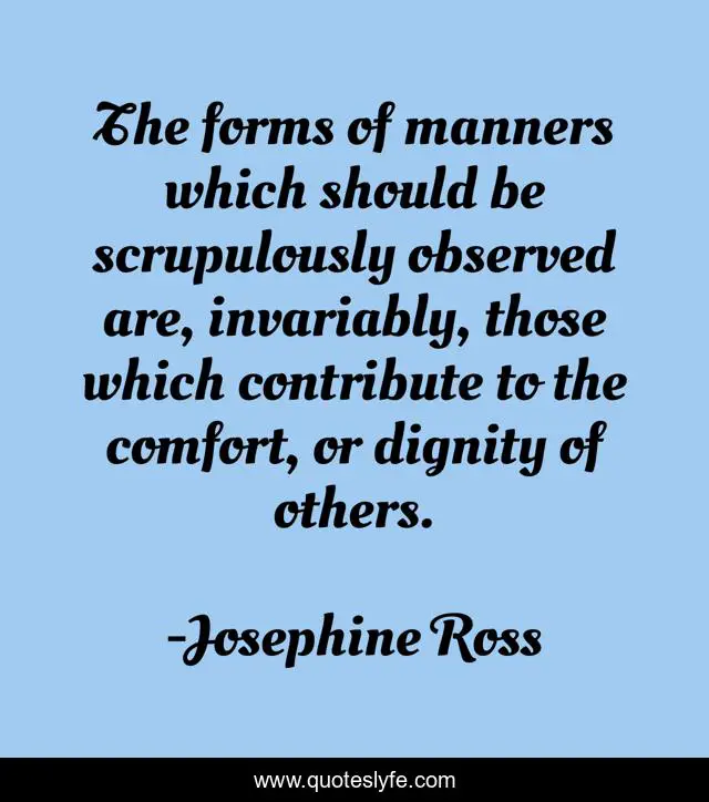 This page presents the quote "The forms of manners which should be scrupulously observed are, invariably, those which contribute to the comfort, or dignity of others.". Author of this quote is Josephine Ross. This quote is about respect, manners,.