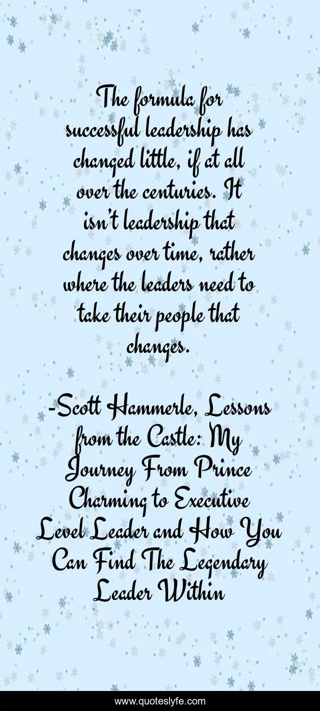 "Scott Hammerle, Lessons from the Castle: My Journey From Prince Charming to Executive Level Leader and How You Can Find The Legendary Leader Within Quotes." Quoteslyfe.com, 2025. Mon. 08 Dec. 2025. <https://www.quoteslyfe.com/quote/The-formula-for-successful-leadership-has-changed-64963>.