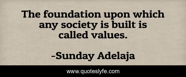 This page presents the quote "The foundation upon which any society is built is called values.". Author of this quote is Sunday Adelaja. This quote is about foundation, values, society,.