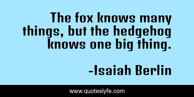 This page presents the quote "The fox knows many things, but the hedgehog knows one big thing.". Author of this quote is Isaiah Berlin. This quote is about knowledge, wisdom,.