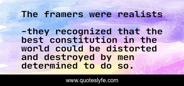 "they recognized that the best constitution in the world could be distorted and destroyed by men determined to do so. Quotes." Quoteslyfe.com, 2025. Tue. 09 Dec. 2025. <https://www.quoteslyfe.com/quote/The-framers-were-realists-191258>.