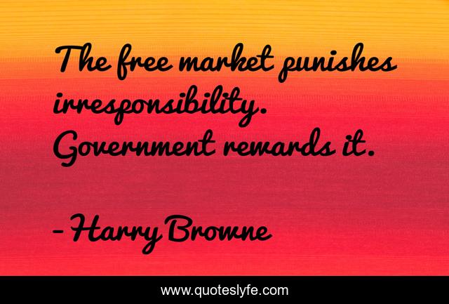 "Harry Browne Quotes." Quoteslyfe.com, 2025. Mon. 08 Dec. 2025. <https://www.quoteslyfe.com/quote/The-free-market-punishes-irresponsibility-Government-rewards-191148>.