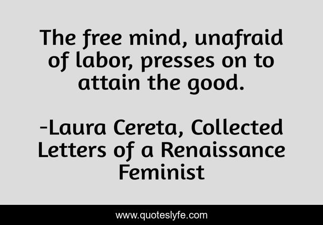 "Laura Cereta, Collected Letters of a Renaissance Feminist Quotes." Quoteslyfe.com, 2025. Fri. 05 Dec. 2025. <https://www.quoteslyfe.com/quote/The-free-mind-unafraid-of-labor-presses-7648>.
