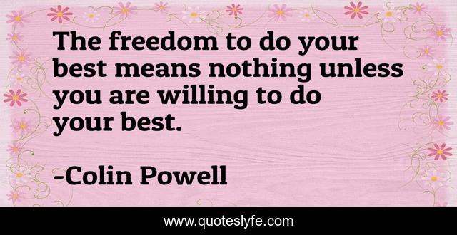 This page presents the quote "The freedom to do your best means nothing unless you are willing to do your best.". Author of this quote is Colin Powell. .