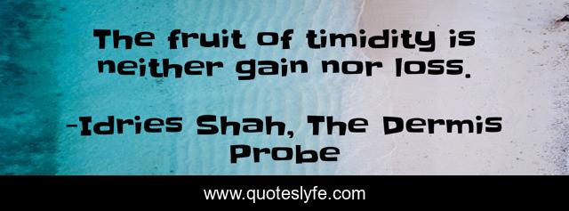 This page presents the quote "The fruit of timidity is neither gain nor loss.". Author of this quote is Idries Shah, The Dermis Probe. This quote is about proverb, sufis, sufism, wisdom,.
