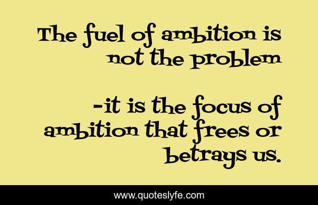 This page presents the quote "The fuel of ambition is not the problem". Author of this quote is it is the focus of ambition that frees or betrays us.. .