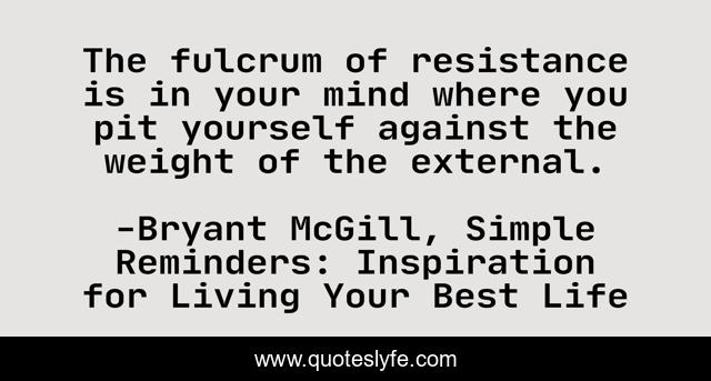 "Bryant McGill, Simple Reminders: Inspiration for Living Your Best Life Quotes." Quoteslyfe.com, 2025. Sun. 07 Dec. 2025. <https://www.quoteslyfe.com/quote/The-fulcrum-of-resistance-is-in-your-87723>.
