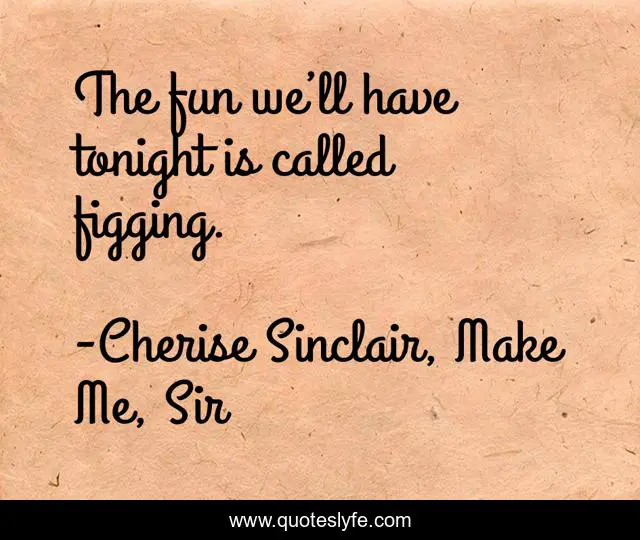 This page presents the quote "The fun we’ll have tonight is called figging.". Author of this quote is Cherise Sinclair, Make Me, Sir. This quote is about erotica, make-me-sir, cherise-sinclair,.