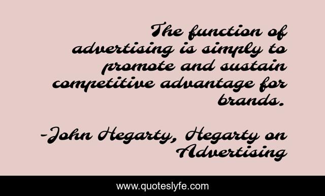 This page presents the quote "The function of advertising is simply to promote and sustain competitive advantage for brands.". Author of this quote is John Hegarty, Hegarty on Advertising. This quote is about brands, branding, competitive-advantage, advertising,.