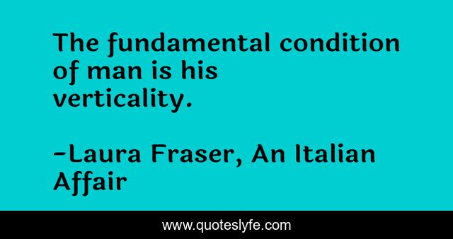 This page presents the quote "The fundamental condition of man is his verticality.". Author of this quote is Laura Fraser, An Italian Affair. .