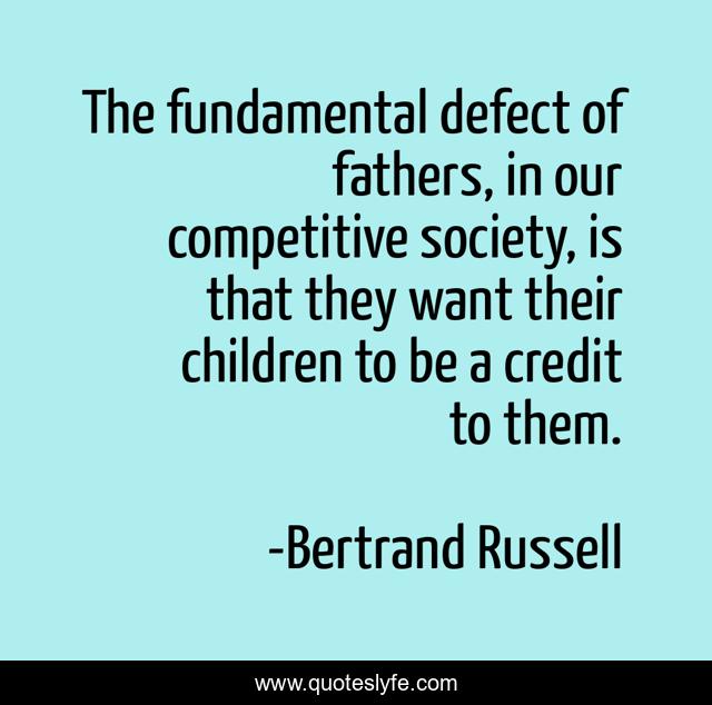 This page presents the quote "The fundamental defect of fathers, in our competitive society, is that they want their children to be a credit to them.". Author of this quote is Bertrand Russell. This quote is about society, children,.