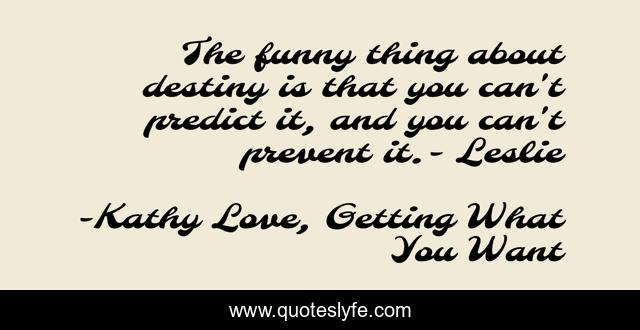 This page presents the quote "The funny thing about destiny is that you can't predict it, and you can't prevent it.- Leslie". Author of this quote is Kathy Love, Getting What You Want. .