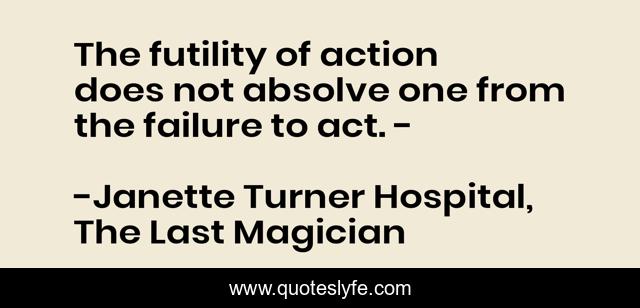 This page presents the quote "The futility of action does not absolve one from the failure to act. -". Author of this quote is Janette Turner Hospital, The Last Magician. This quote is about action, failure, fate, success, the-last-magician,.