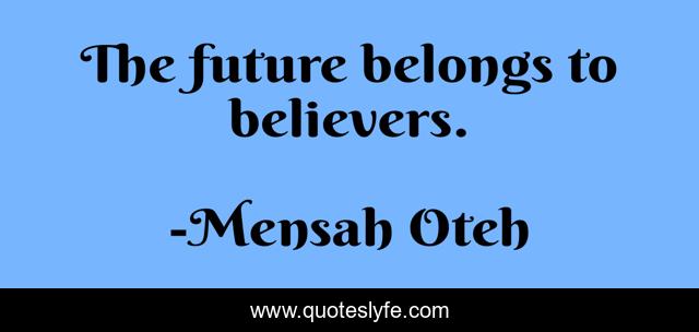 "Mensah Oteh Quotes." Quoteslyfe.com, 2025. Sat. 06 Dec. 2025. <https://www.quoteslyfe.com/quote/The-future-belongs-to-believers-49182>.