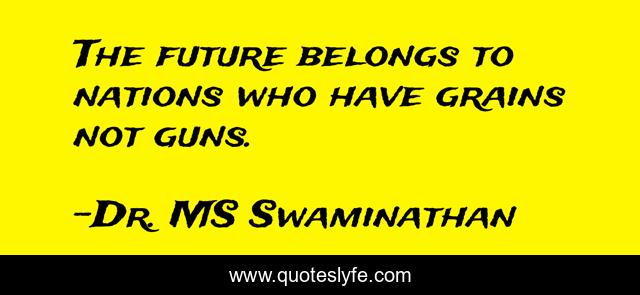This page presents the quote "The future belongs to nations who have grains not guns.". Author of this quote is Dr. MS Swaminathan. This quote is about future, guns, grains, war,.