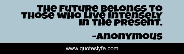 This page presents the quote "The future belongs to those who live intensely in the present.". Author of this quote is Anonymous. .