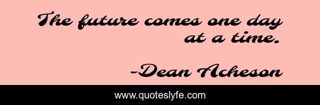 This page presents the quote "The future comes one day at a time.". Author of this quote is Dean Acheson. .