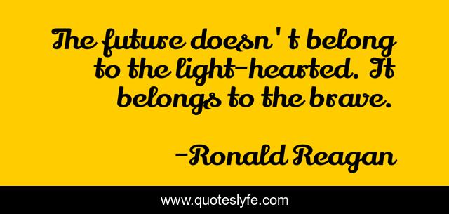 This page presents the quote "The future doesn't belong to the light-hearted. It belongs to the brave.". Author of this quote is Ronald Reagan. This quote is about enthusiasm, reagan, bravery, inspirational,.