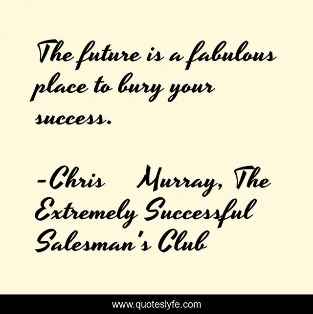 "Chris Murray, The Extremely Successful Salesman's Club Quotes." Quoteslyfe.com, 2025. Mon. 08 Dec. 2025. <https://www.quoteslyfe.com/quote/The-future-is-a-fabulous-place-to-109734>.