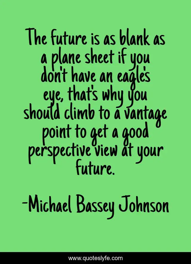 The future is as blank as a plane sheet if you don't have an eagle's eye, that's why you should climb to a vantage point to get a good perspective view at your future.