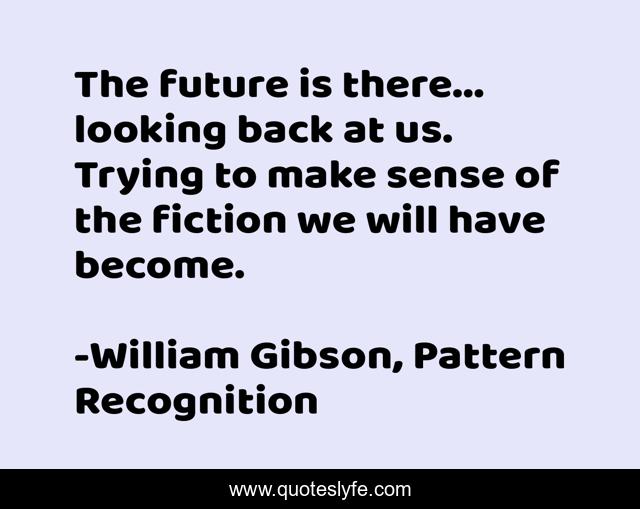 This page presents the quote "The future is there... looking back at us. Trying to make sense of the fiction we will have become.". Author of this quote is William Gibson, Pattern Recognition. .